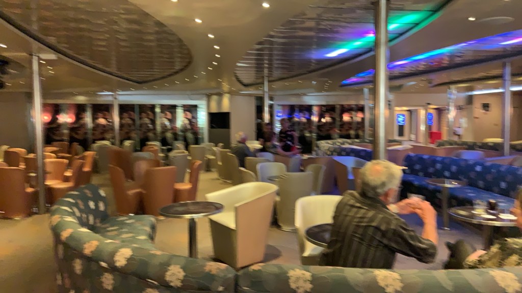 So on to the “Late night Disco” to be entertained by “our resident DJ, Eric “which opens at 11.15 and by the looks of things closes at around Midnight with “Eric” no where to be seen. I went in there at about 11,50 and thought I had wandered into the wrong place as there was not a lot of people there and not even one on the dance floor. So, I thought, “well I am early, probably liven up later “and ordered a pint. The waiter offered to bring it over to me and indicated the tables around the dance floor. I told him that I would sit at the bar whereby he tried to guide me towards the tables by putting his hand on my shoulder. I advised him not to do that and made it plain that I was very capable of sitting where I wished. It turned out that they were trying to dissuade people from using the disco so that they could get finished early and get cleaned up and I was moped around where I was sitting in a very deliberate attempt to make it plain that it was time to go to bed. Absolutely unbelievable.