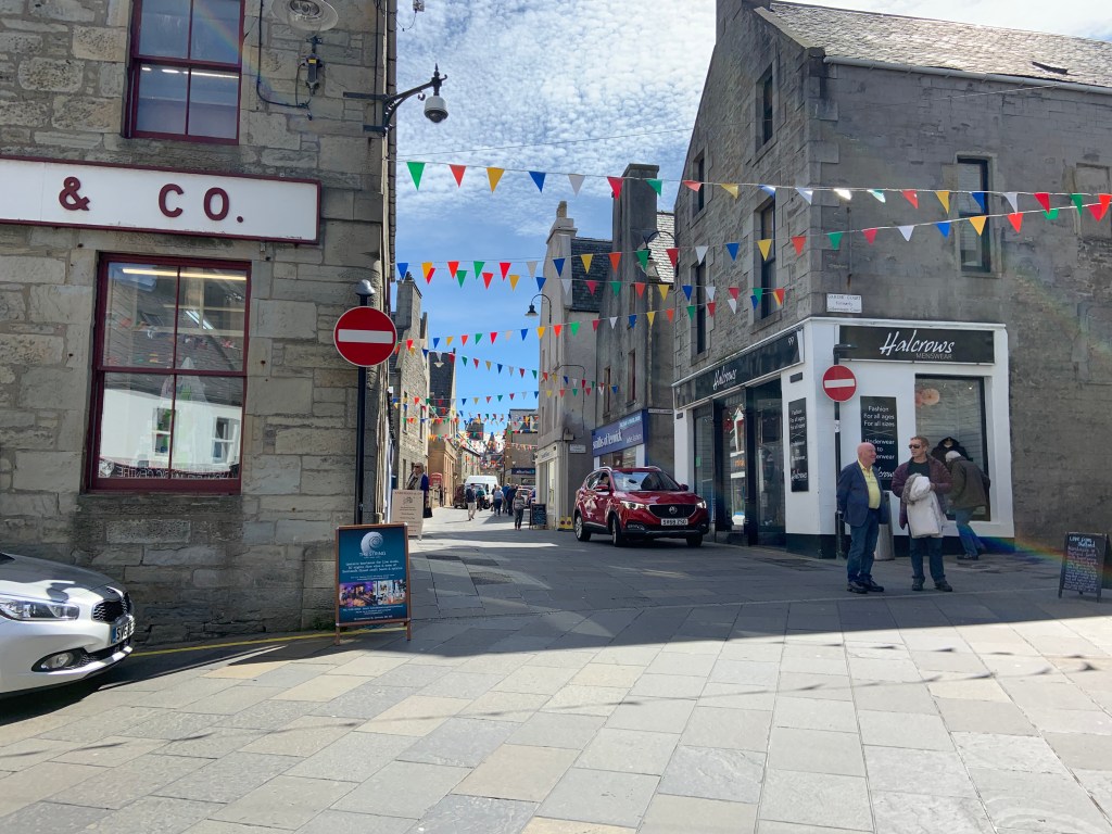Well, hard to believe but another great day weather wise and indeed company wise. After disembarking I walked into the town of Lerwick, a busy town and the capital city of the Shetland Islands. A town of small winding streets with no distinction between pavement and roadways.