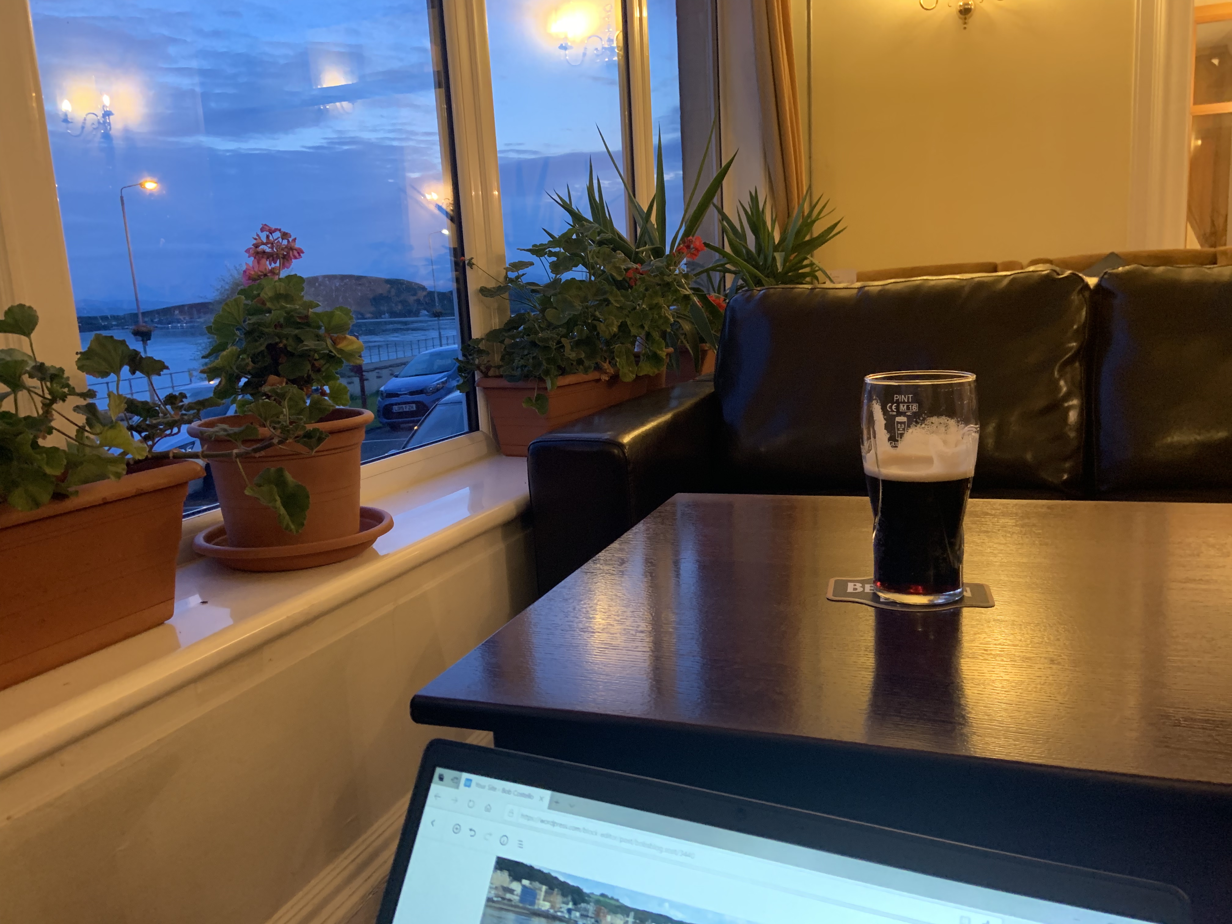 Sitting in the lounge of the hotel, pint of Guinness and looking forward to setting foot on Barra again.