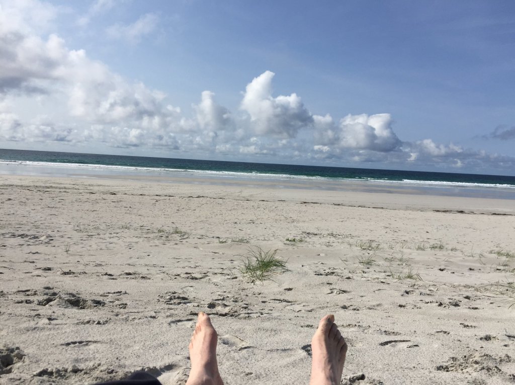 A nice lunch at the Airport Cafe and then a walk over the Machre and onto the beach on the west side of the island ( see photos below). Sten , (the group leader) went in for a swim but was pretty hyperthermic when he crawled out of the water., I had a paddle. The Women ,unfortunately did not take their clothes off to have a swim. So after we managed to get some life into Sten and get his circulation going again the group went for a long walk along the beach and I fell asleep in the sun.