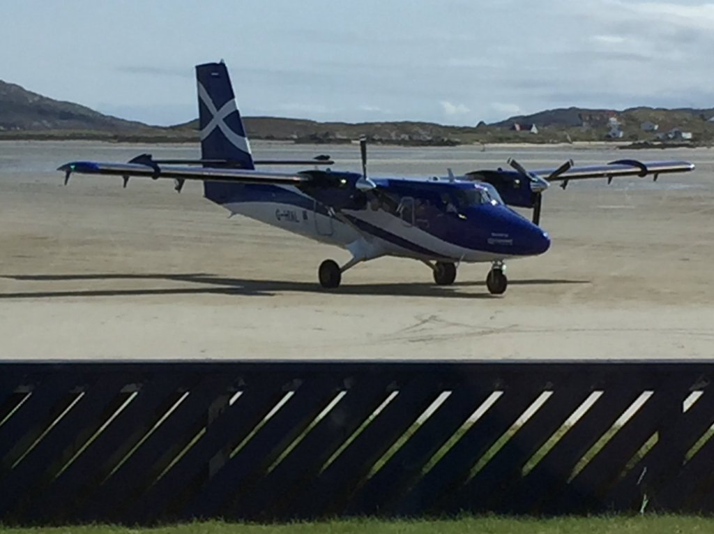 Really nice trip over to Barra on the ferry in brilliant Sunshine, with the cocelshell beach used as a landing runway for the airport coming into sight from about half way over. After docking we headed straight for the Airport for some lunch and to watch the plane landing , perfect timing.