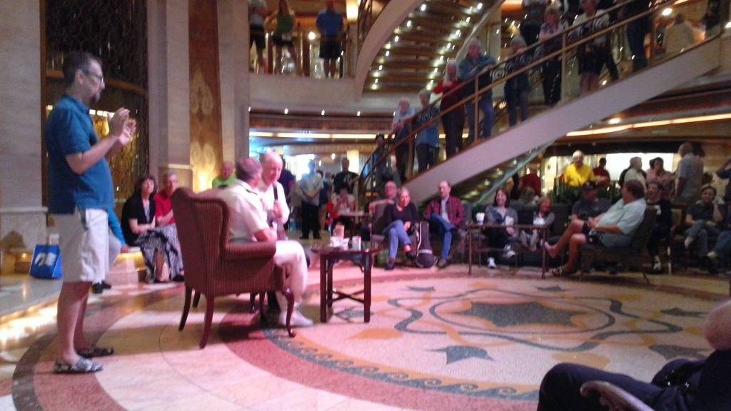 So, my evening last night once more ended up in the disco showing the youngsters how to dance, and now onward into Monday and new adventures among the Zimmer’s, wheel chairs and nice people and I attach ( hopefully) photos of the Captains coffee morning .