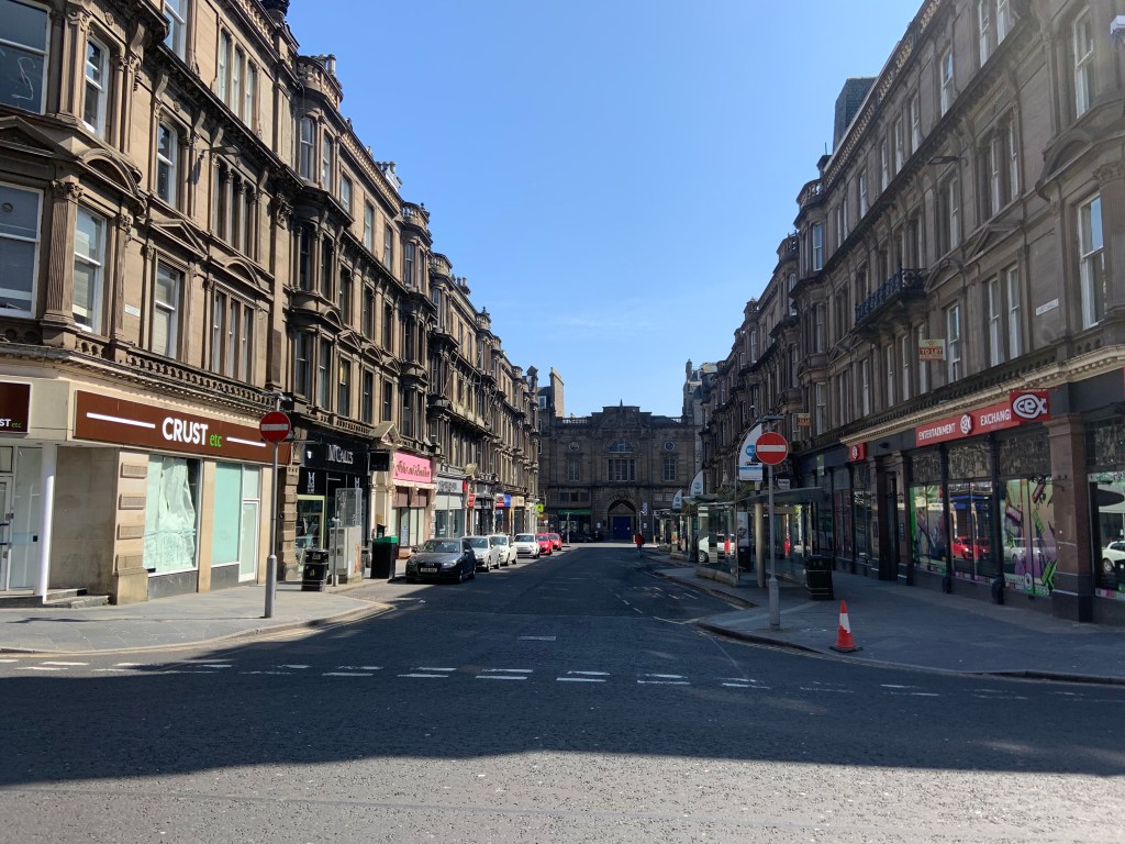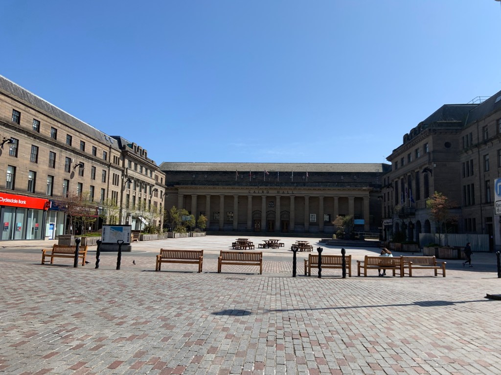 So onward along the high Street passing Whitehall street looking down towards Whitehall crescent and the Gilfillan Memorial Church. Arriving at the City Square . Now I could write a book about this place as it was, where, in 2014 we, the Yes Bus team campaigned almost constantly during the last months of the referendum. Some day I will write a book about all that happened here and I promise , it will open some eyes and cause a few bad moments for certain people . However, that is for another day, and today I cast my mind back to the good times we had during that campaign for Scottish freedom from the last vestiges of the British Empire.