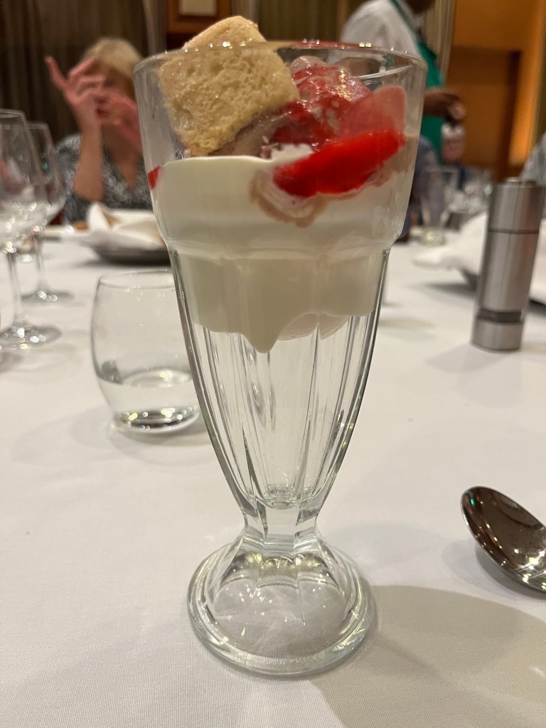 Day one on board was pleasant as we sailed down the Themes and into the English Channel, turning North and heading to the first stop which will be Kirkwall on Orkney. Nice dinner last night, apart from a very strange ice cream Sundae but the peasant company made up for it, followed by a couple of beers in one of the bars that had an excellent piano player then off to the obligatory disco, unfortunately, the disco closed at one o’clock, probably due to the number of elderly patrons lying about the floor due to various medical emergency’s brought on by overexertion on the dance floor. It brought a new meaning to the Song “ Save the last dance for Me.”