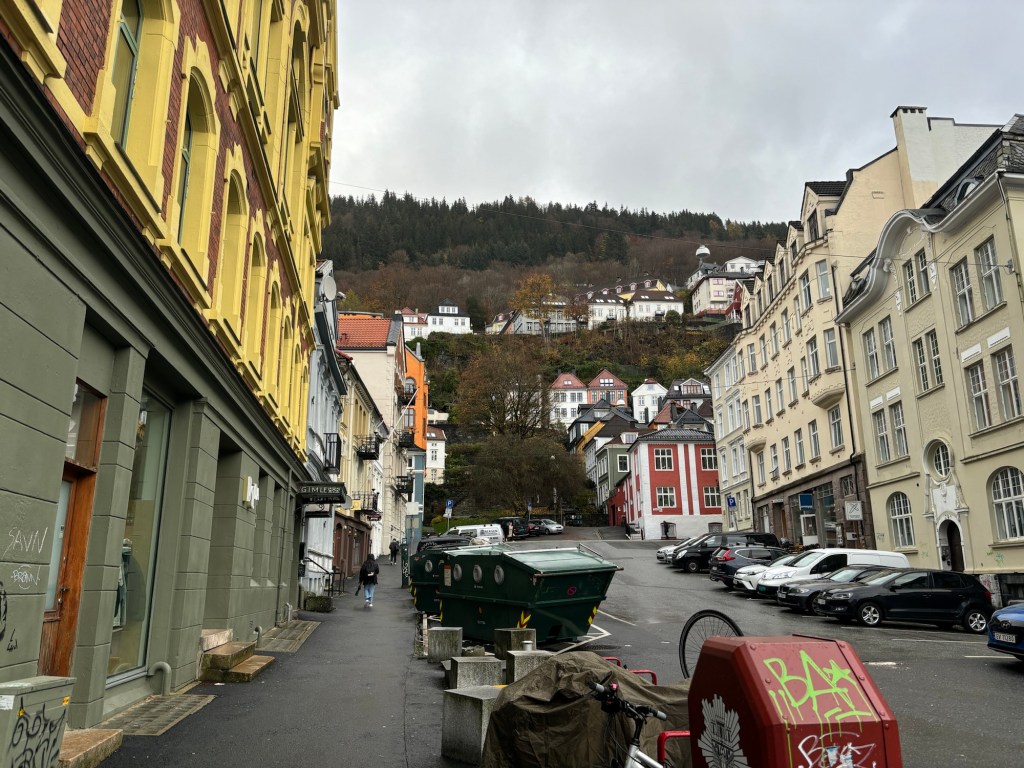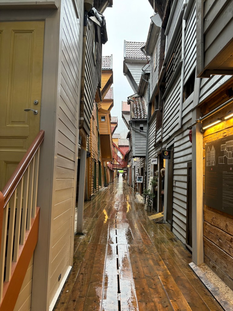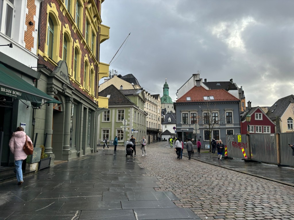 Today we docked in Bergen, which is a thriving city and an obvious hub for the oil industry, with a very busy harbour, shared between fishing, oil and the numerous ferries which sail up and down the coast of Norway going right up into the Arctic Circle. One of the better-known ferry companies is Hurtigruten, who also do expedition cruises into the Antarctic.